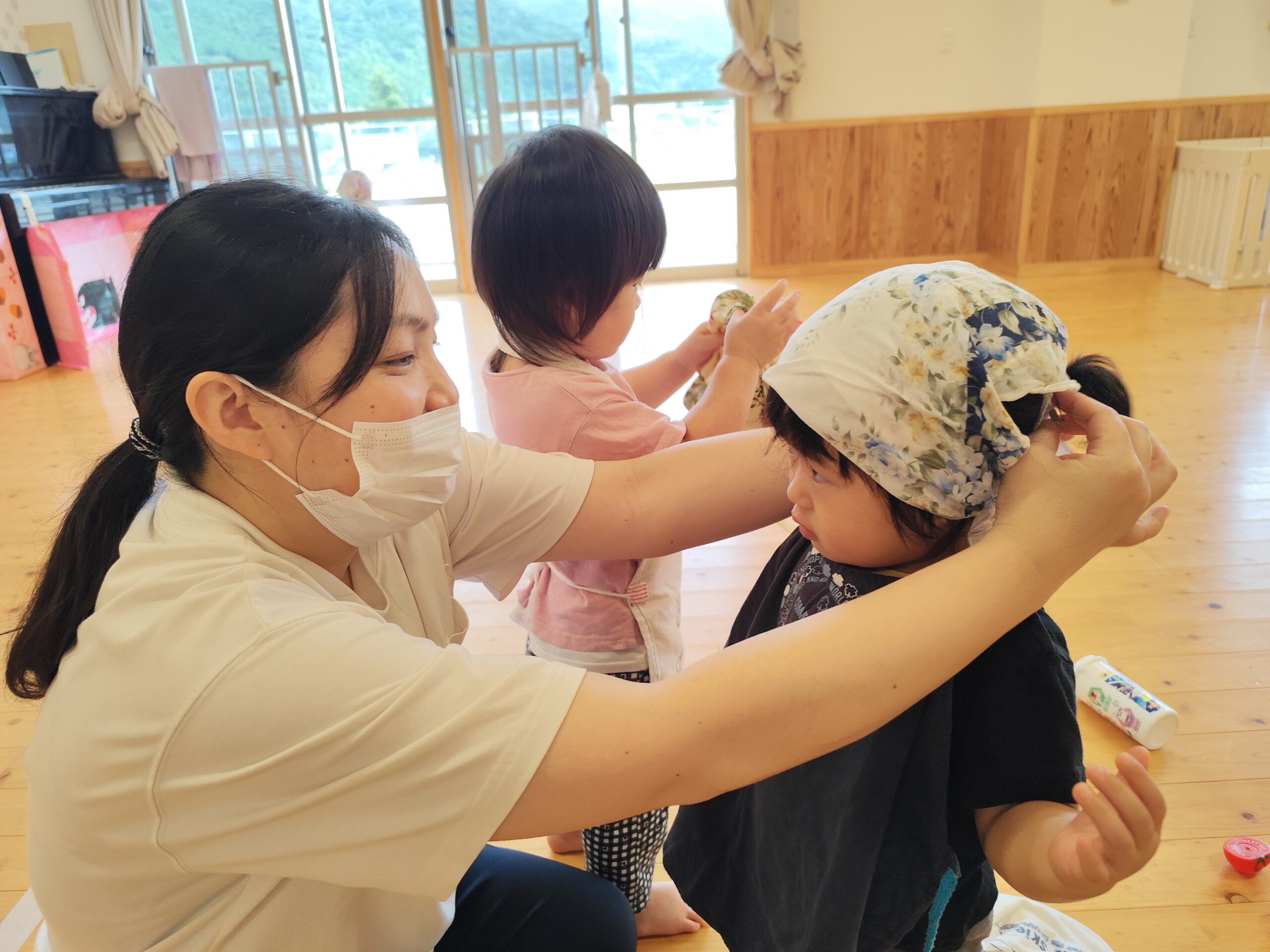 残暑が厳しいので、一人ひとりの体調に気をつけていきたいと思います。「早寝早起き、朝ご飯」をしっかりと摂っての登園を習慣づけましょう🍚