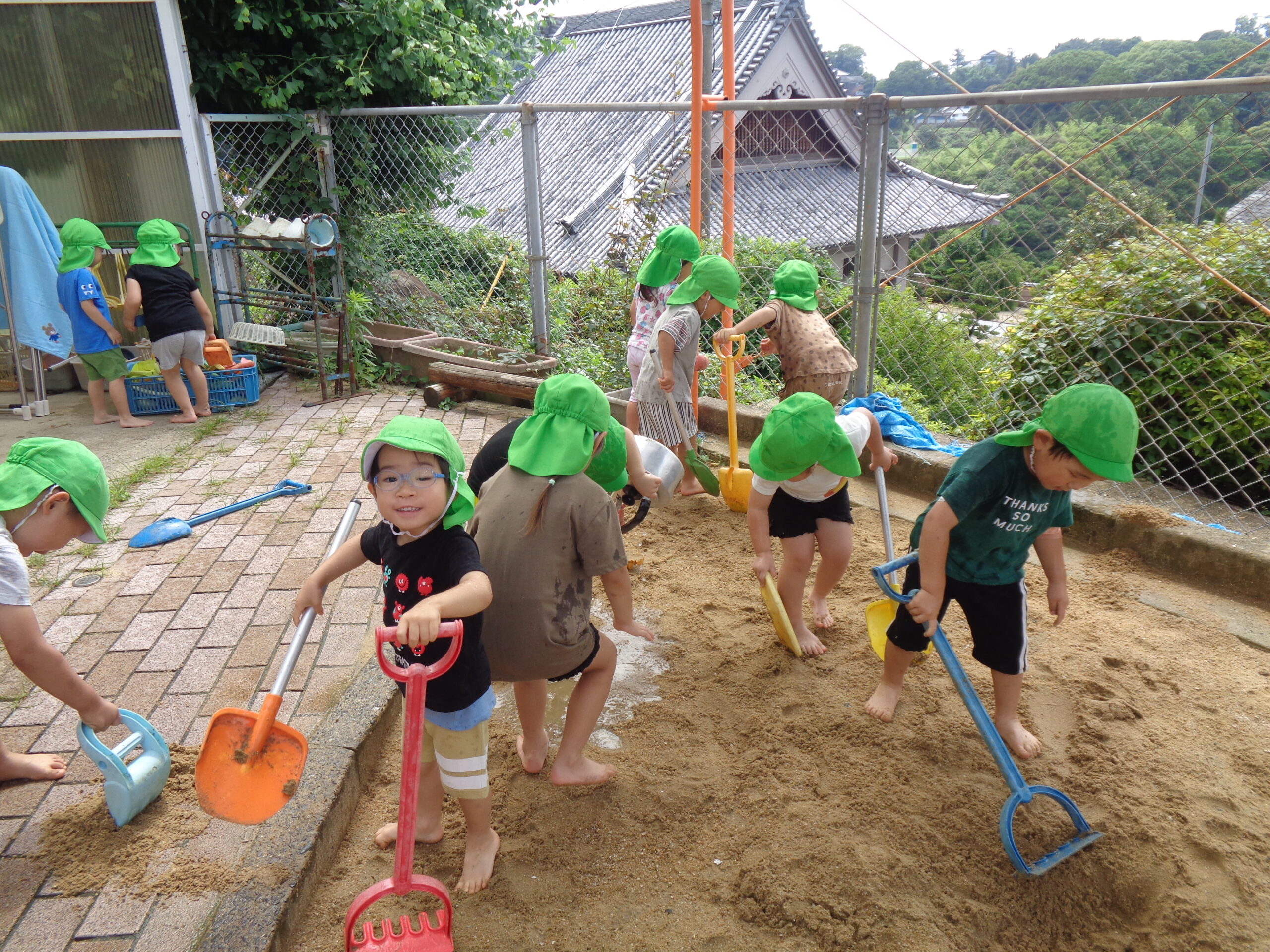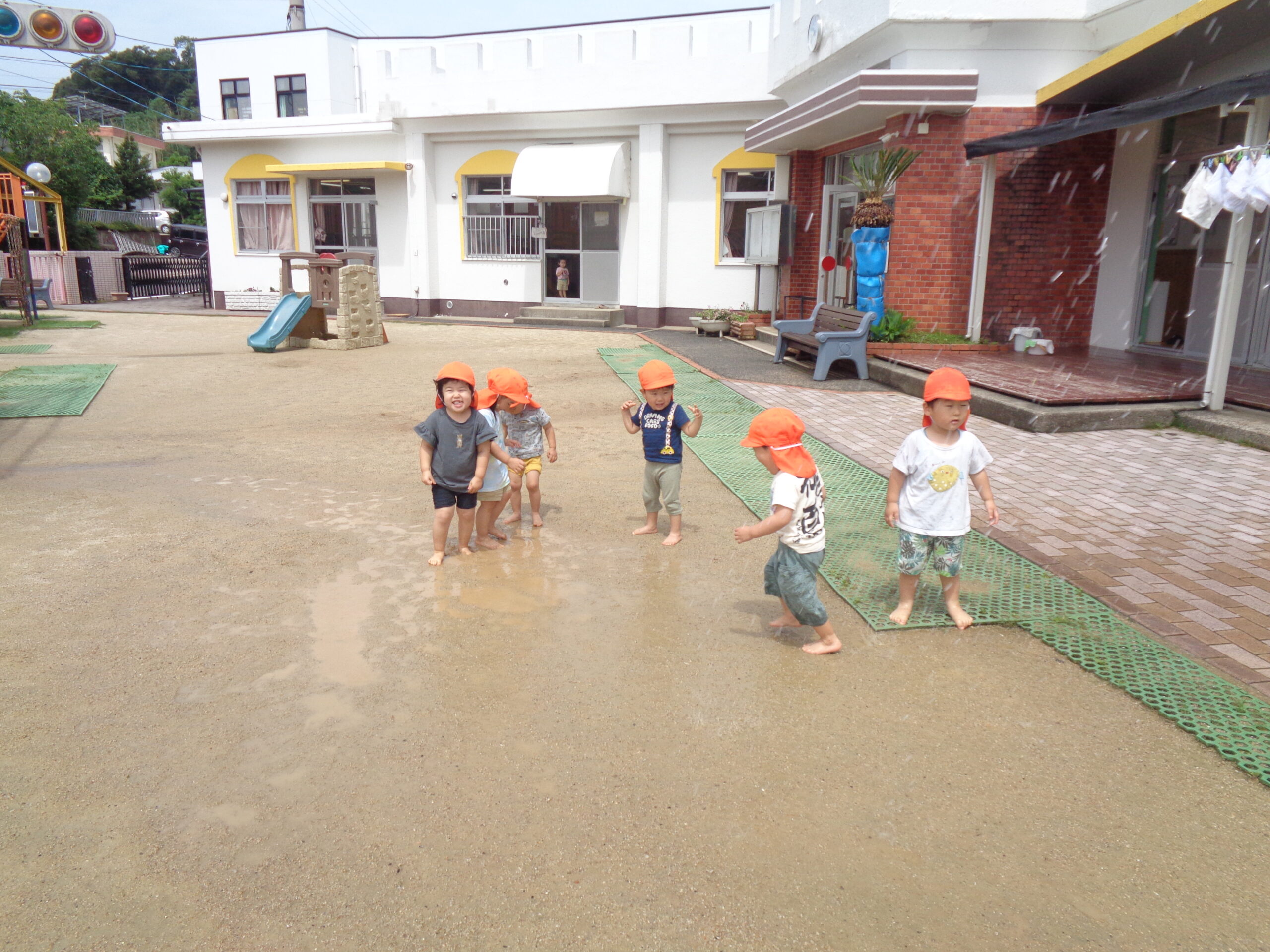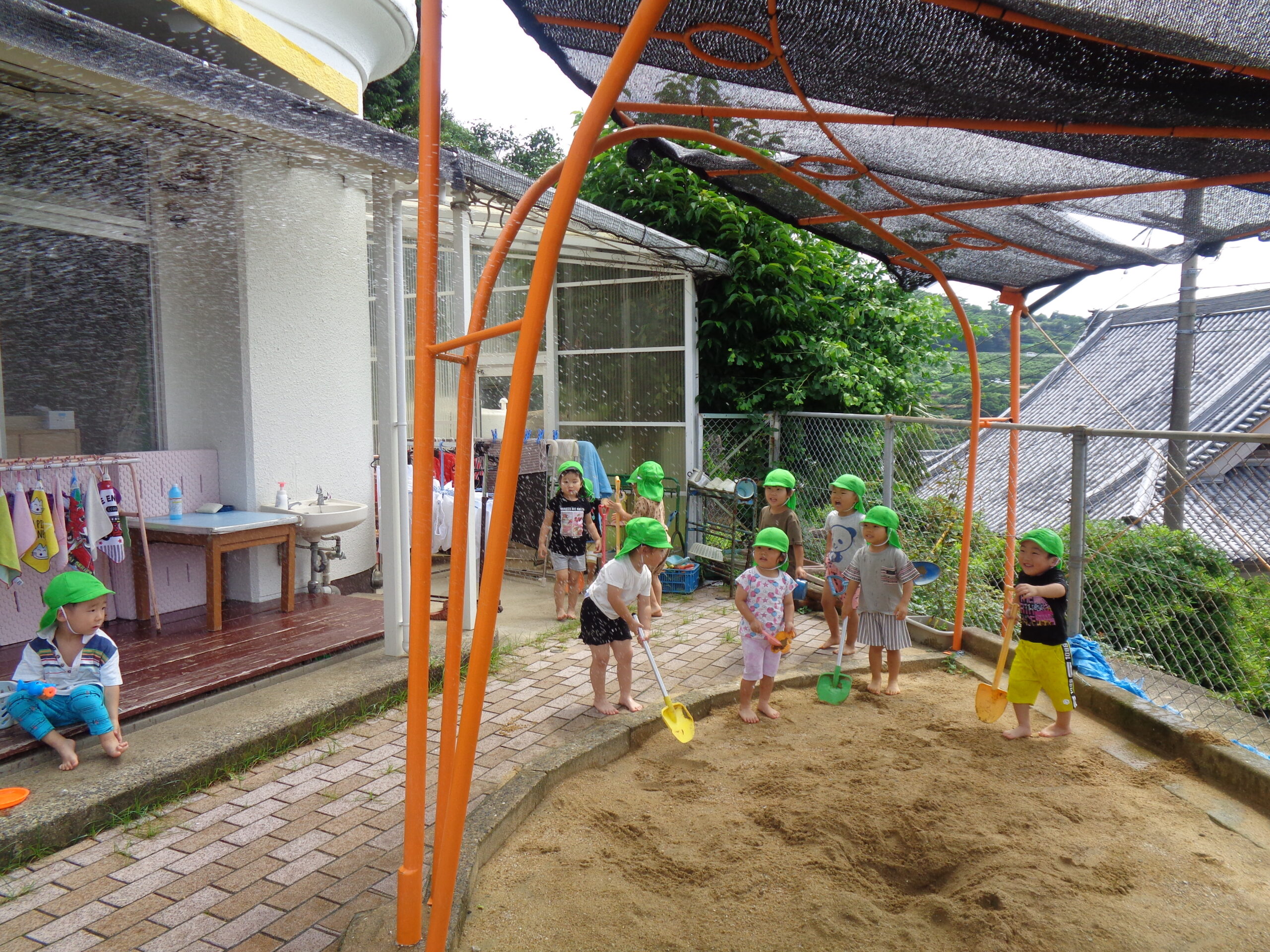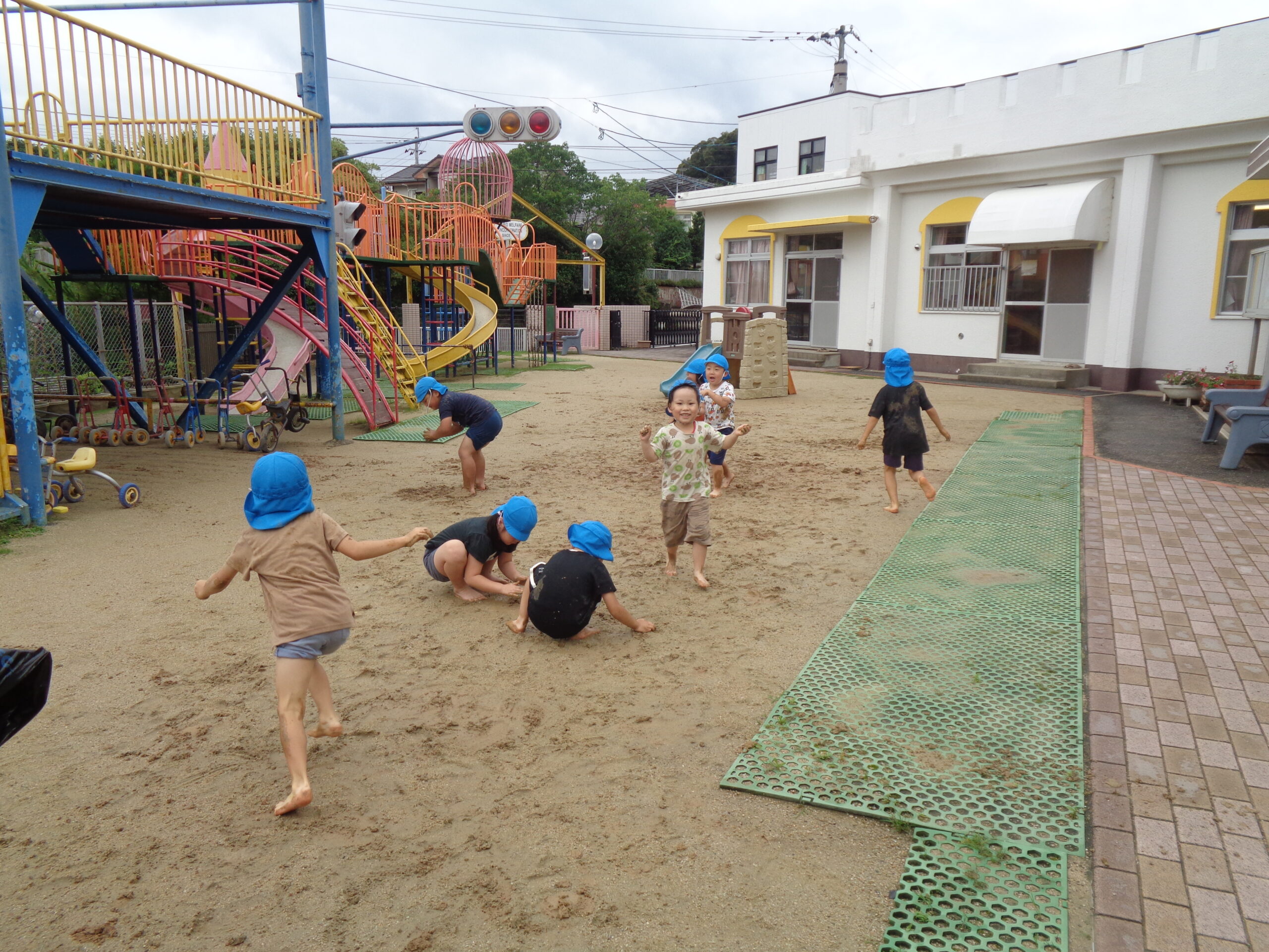 泥団子投げ合いの激しいこと。最後は泥ケーキを作り「美味しそう!」の声。