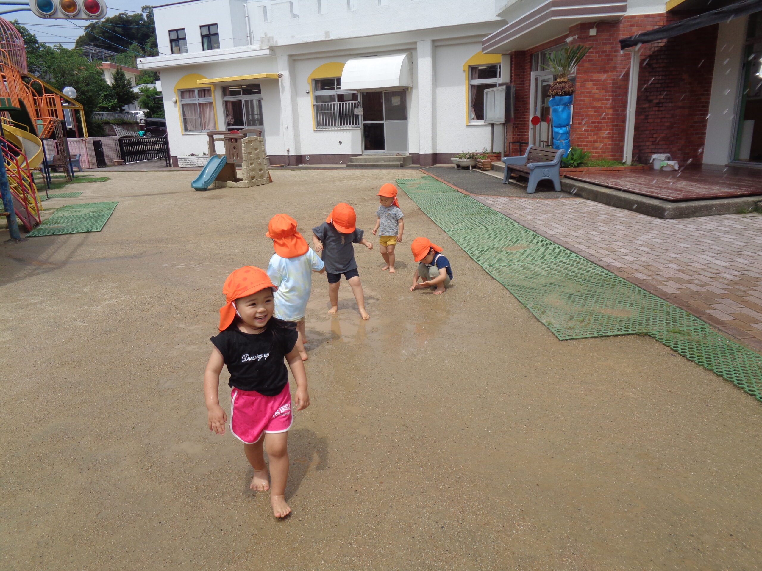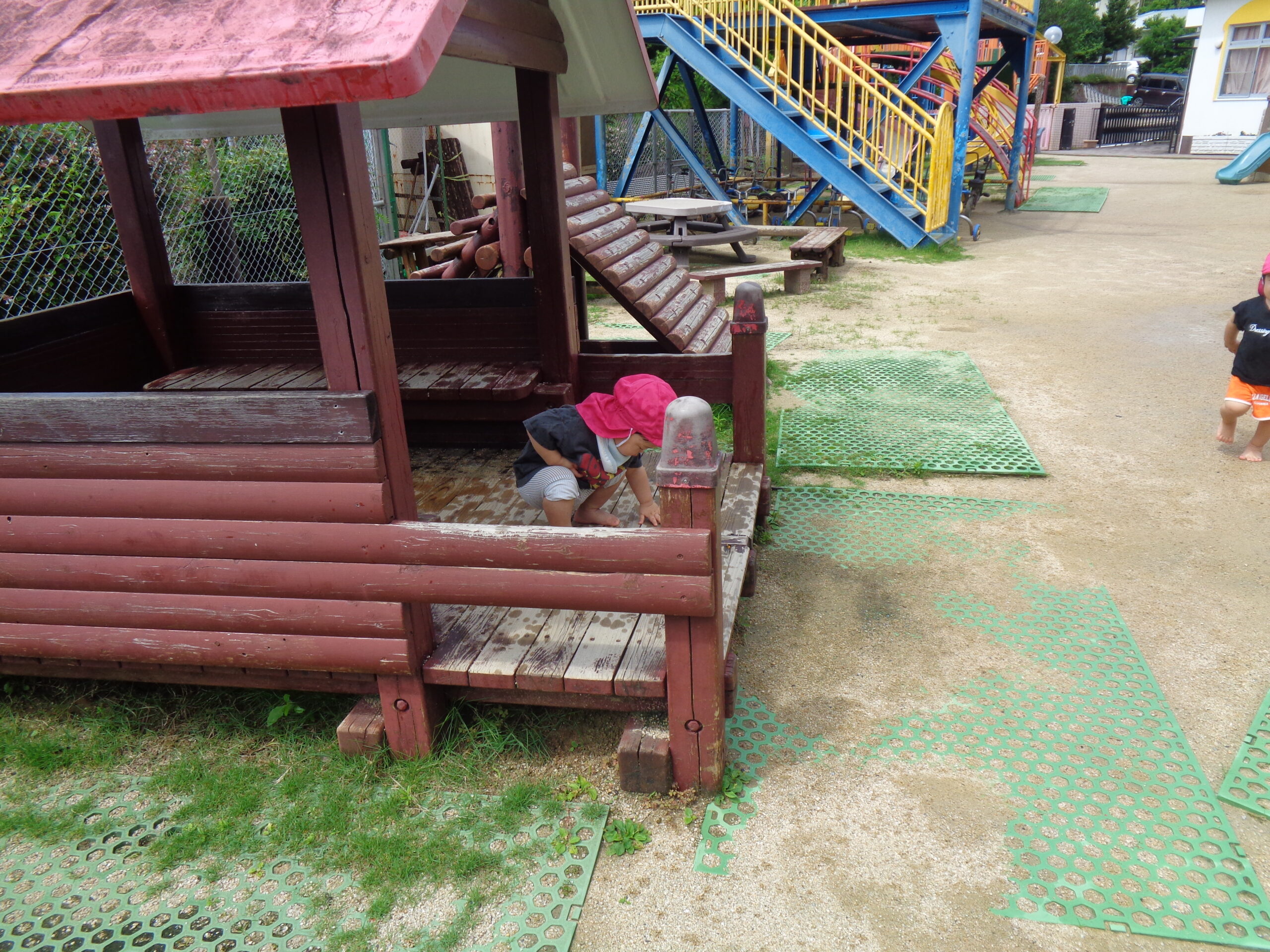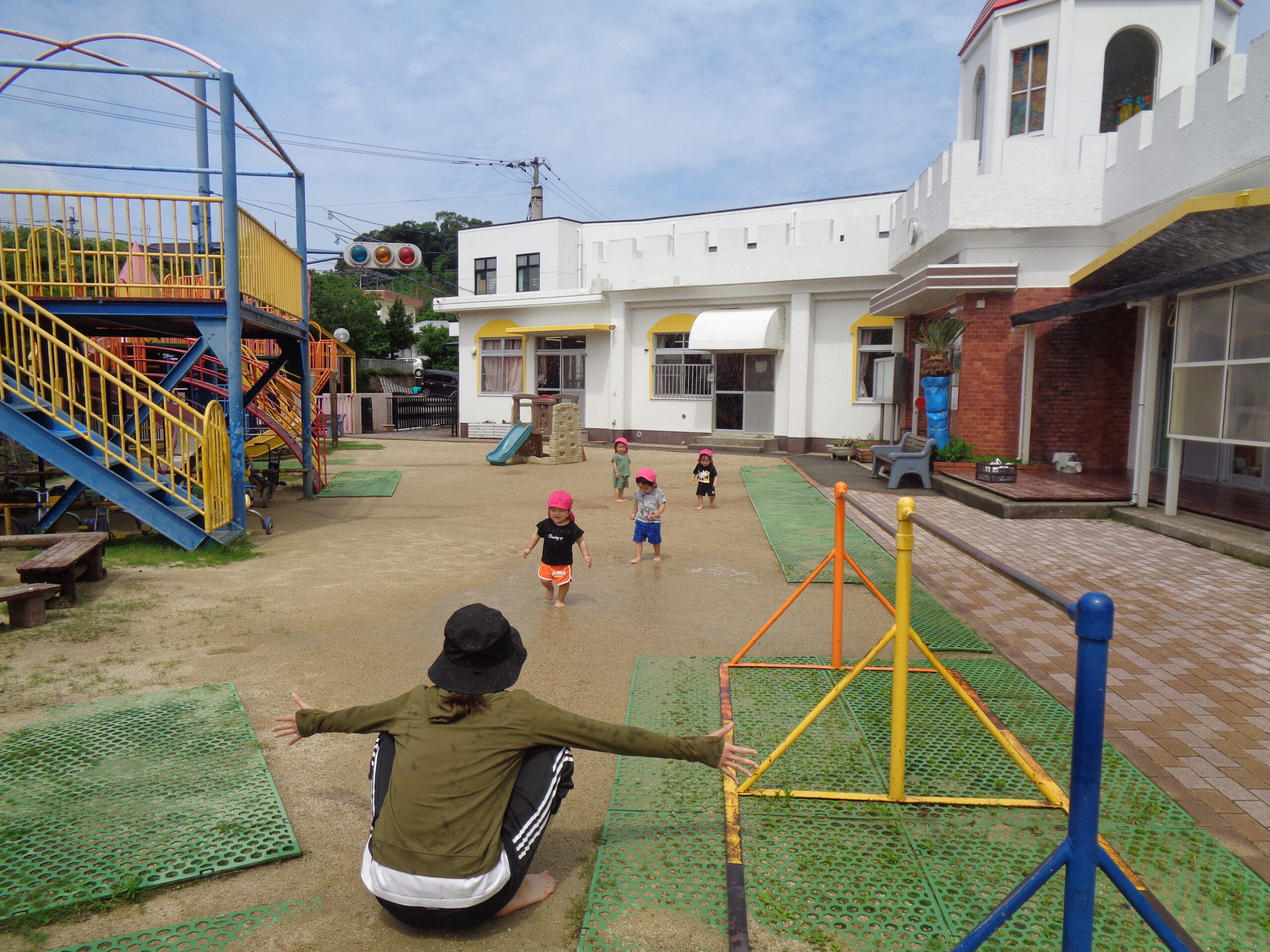 熱中症指数(WBGT)を計り、「さぁ、お外に行くよ~」の声掛けに、