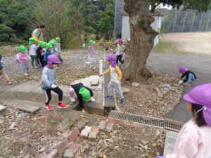 ✨菊、百合組は薪集め、葉っぱや小枝を沢山拾いました。