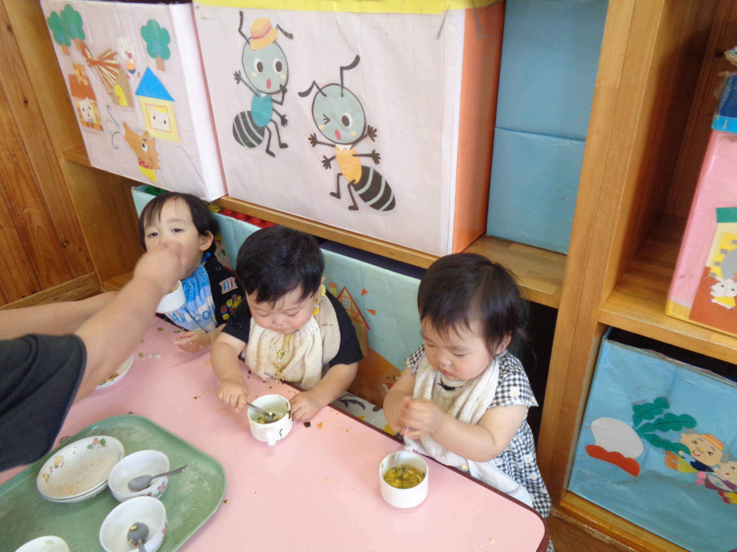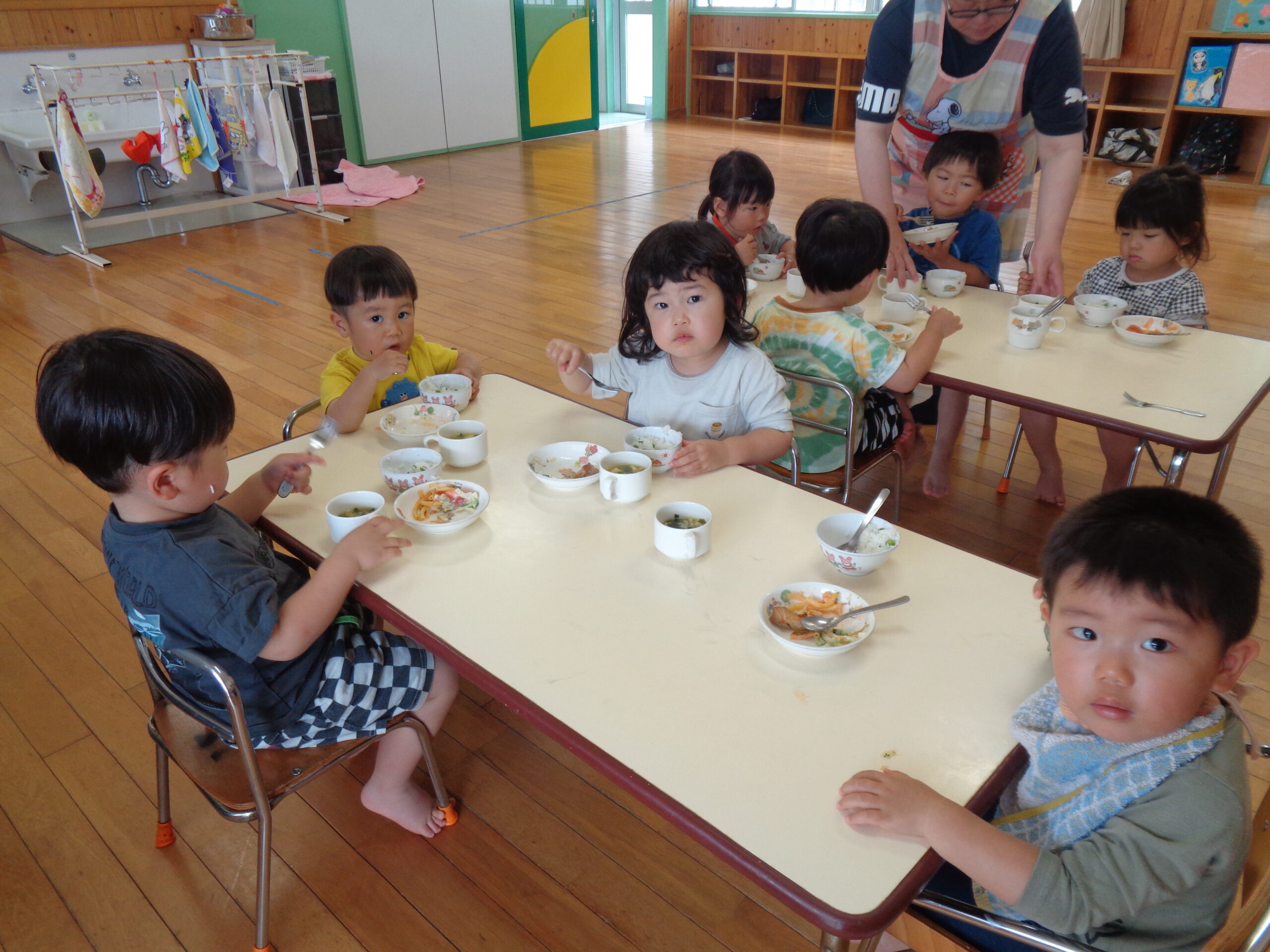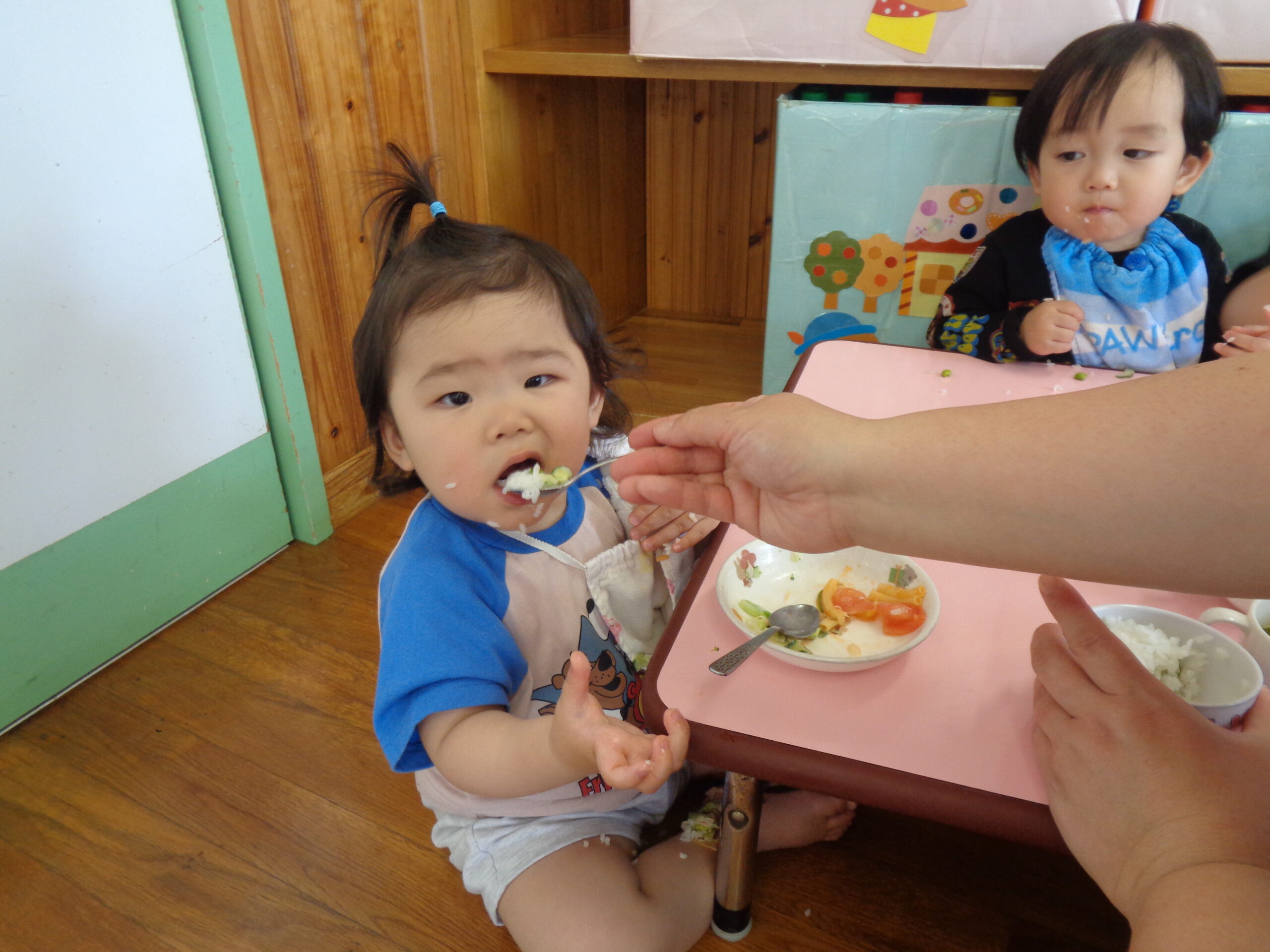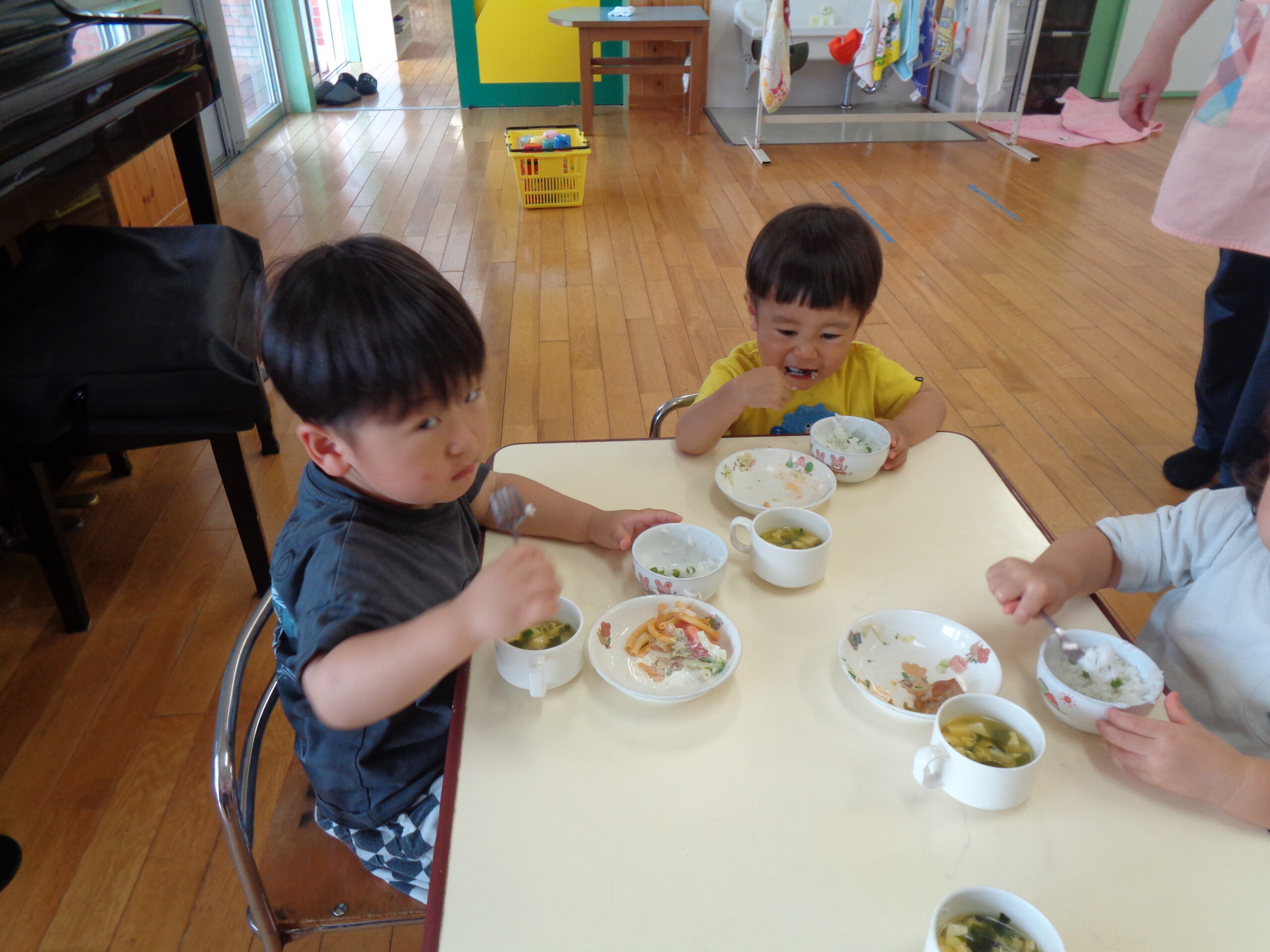 小さいクラスも、よく食べ、笑顔で食べて、上手に食べられるようになっています。