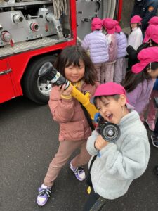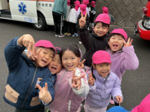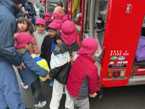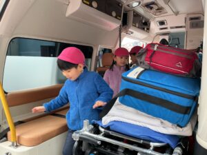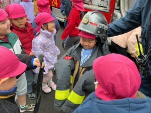 救急車に乗せてもらったり、消防服を着せてもらったり。