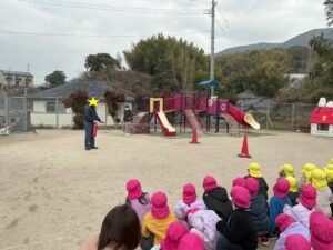 また、火の取り扱い方や消火器の使い方、火事の時の逃げ方などを教えていただきました。
