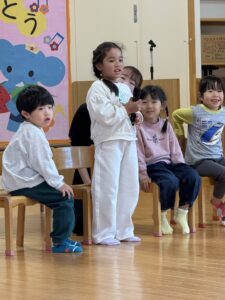 3月の誕生会🎂とひな祭り会🎎 2026.03.06 3月生まれのお友だちをお祝いしました🎊 先生たちからお友だちの紹介です⭐ 大きいお友だちはそれぞれ将来の夢を教えてくれました✨ 上手に発表できました👏 先生たちからはひな祭りの出しもののプレゼント🎁! お飾りについて間違い探し! どれが正解だろう~?👀 あかりをつけましょぼんぼりに~⭐ うれしいひなまつりを歌いながら貼っていくことができました🎎 誕生会終わり、きれいな虹が出ていました🌈 3月生まれのお友だち、お誕生日おめでとう! Tweet Share Hatena Pocket RSS feedly Pin it