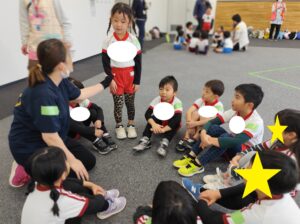 自分の名前、保育園、好きな食べものは?などお話をしましょう