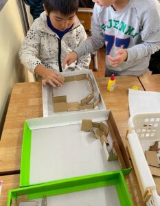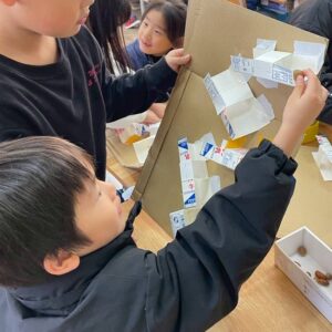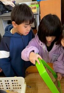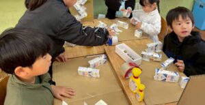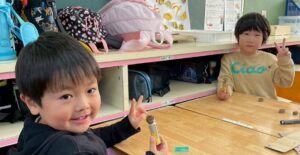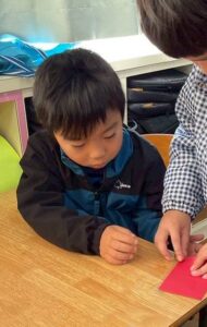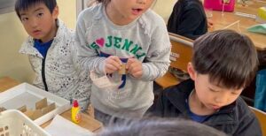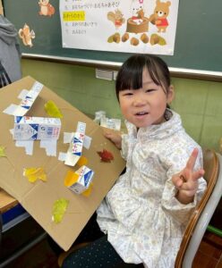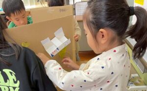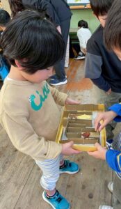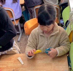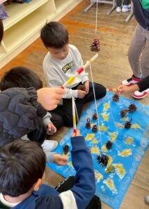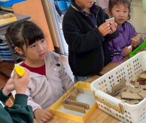 小学校交流会に行ってきました🏫 2025.12.01 佐々小学校に就学予定の藤組さん達が、 交流会「森のわくわくランド🌳」へ🏫 自然の物や要らなくなった箱などを利用して 小学生に教えてもらいながら作ったり、遊んだりしました。 なんだかすこ~し緊張しています😊 「はっけよいのこった」 迷路コロコロ~~~ 🎣まつぼっくりが釣れた~~~!! 小学生のお兄ちゃんお姉ちゃんたち、教え方が上手で、 やさしく教えていただきました。 🏫小学校に行くのが今から楽しみで仕方ないですね!✨ Tweet Share Hatena Pocket RSS feedly Pin it