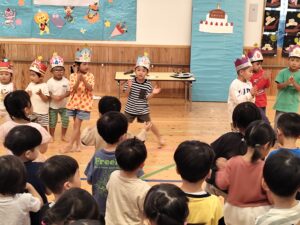 10月のお誕生会がありました🎉 2025.10.24 10月のお誕生会の質問は・・・??? 🎤好きな食べものは何ですか? ➡「りんご🍎」「メロン🍈」「レモン🍋」です 🎤運動会では何が楽しかったですか?🏃 ➡「組体操」「リレー」です シルエットクイズ「これな~んだ❓」 「やったあ✊」 先生の背中大好き♡ 画用紙のお化けや猫が、なぜだか・・「こわい・・」と目を覆っていました😊👐 「〇〇!!!」と当てたい気持ちがあふれ出ています Tweet Share Hatena Pocket RSS feedly Pin it