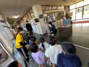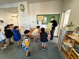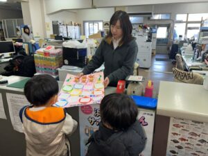 お世話になりました 2026.01.09 今年1年お世話になった近所の皆様に、年末のご挨拶と自分たちで作ったカレンダーを配りに行きました。小佐々中学校、コミュニティーセンター、佐世保支所、商店、楠栖小学校、商店、公共施設などに、桜組の子どもたちが「今年もお世話になりました。来年もよろしくお願いします」と1軒、1軒挨拶をして回りました。小学校では「皆さんが来るのを楽しみにしていますよ!」と校長先生と教頭先生に言ってもらいました。 Tweet Share Hatena Pocket RSS feedly Pin it