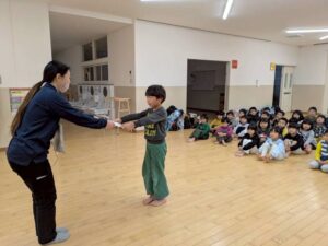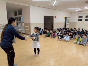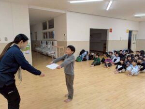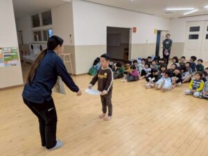 今年度最後の交通安全教室 2026.02.04 令和7年度のさいごの交通安全教室。普段あまり使わない踏切の渡り方うあ横断歩道の渡り方、不動教の渡り方をキャラクターを使ってとても分かりやすく教えてもらいました。また、6年間交通安全について学んだ桜組さんは修了証を頂きました。修了証のもらい方も年長さんらしくとてもかっこよかったですよ。 Tweet Share Hatena Pocket RSS feedly Pin it