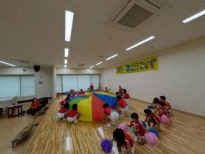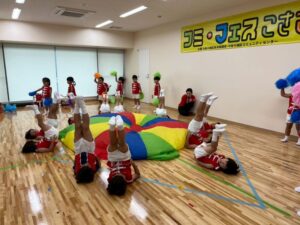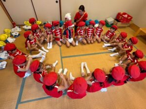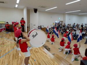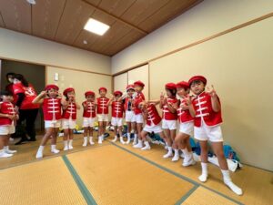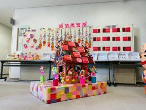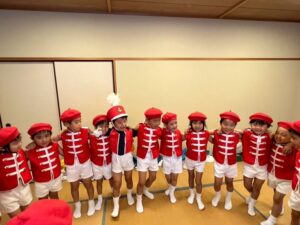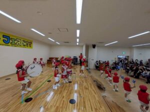 毎年恒例の小佐々町の文化祭に出演しました。プログラムは毎年2番!西端太鼓の後に行います。「緊張するね!」とみんなで言いながらも「頑張るぞ!」と声を掛け合っていました。今年はマーチング演奏とパラバルーンを披  。年長さんと年中さんには少し狭い感じもしましたが、元気いっぱいの演技に会場からは大拍手を頂きました。演技のほかに作品展にも出品。作品は蒲公英さんから全クラス出し、みんなでお菓子の家を作りました。皆さん、「おいしそう~にできてるね!」とみて頂きました。