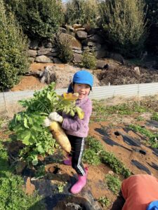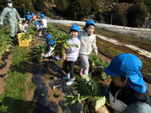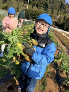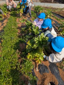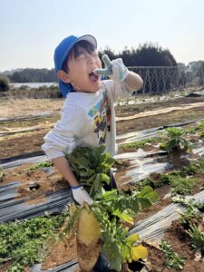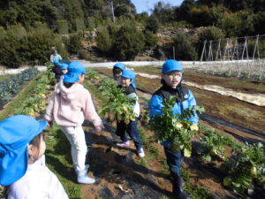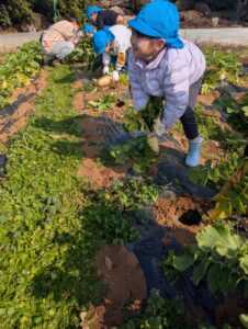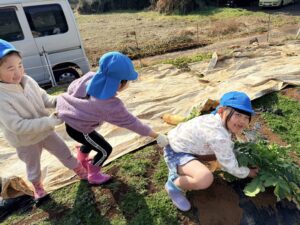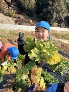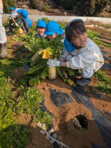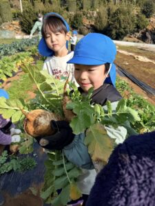 宙組 大根の収穫に行ってきました! 2026.02.13 「行ってきま~す!」 「頑張って引っ張るぞー!」「お~!」 よいしょ! 採れました! 大きい大根! やったね! 沢山採れました! ありがとうございました~ 大根の葉に付いていた、てんとう虫と一緒に帰ってきました。 Tweet Share Hatena Pocket RSS feedly Pin it