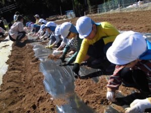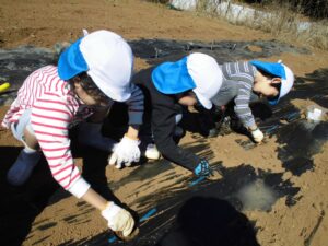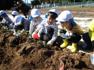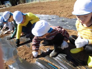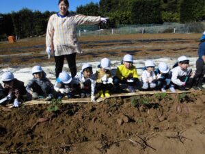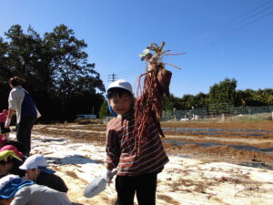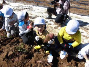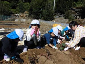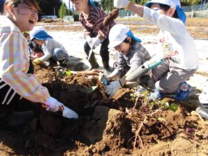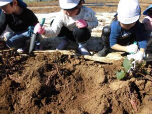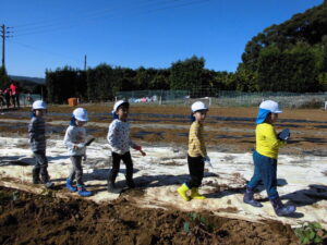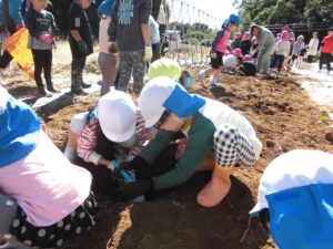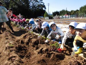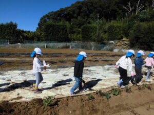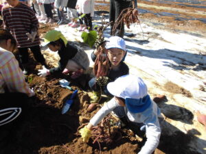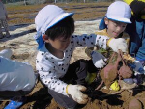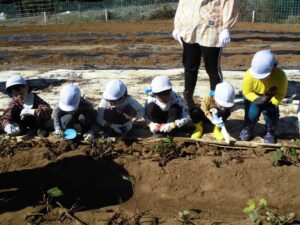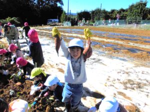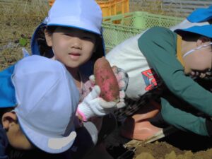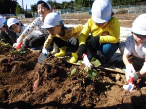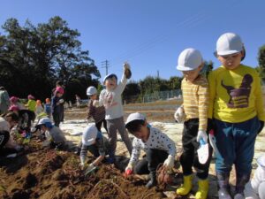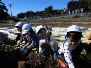 宙組さんが姉妹園である針尾保育園の畑に芋掘りに行ってきました!