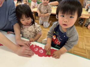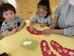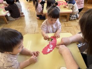 花1組 鬼のお面製作 2026.01.22 節分に向けてスタンプを使って鬼のお面を作りました! 「ぺったん!」 楽しいね~! 「出来ました!」 どんなお面ができたかな? Tweet Share Hatena Pocket RSS feedly Pin it